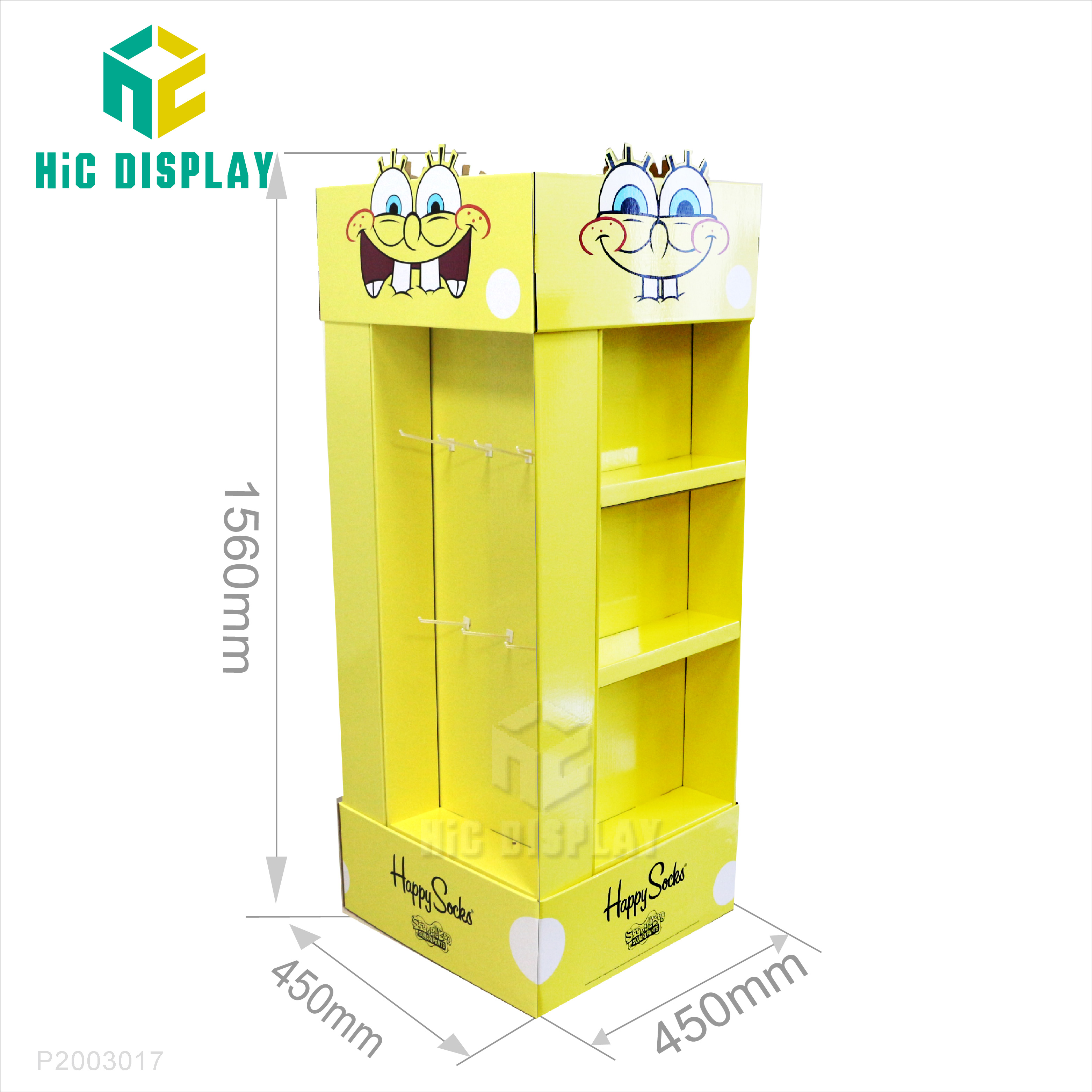 - 产品类型:商场纸货架 产品材料:350g灰卡+B坑 产品规格:450*450*1560mm 产品承重:正常承重 产品工艺:彩色印刷,覆膜,光胶,裱,啤,切,粘成品 使用范围:商场,超市,专卖店商品陈列、活动促销等 所用配件:塑料挂钩10个 包装方式:打平包装,每箱一套