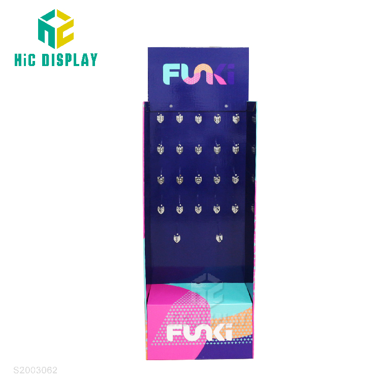 - 产品类型:商场纸货架 产品材料:350g灰卡+BE坑 产品规格:530*280*1570mm 产品承重:正常承重 产品工艺:彩色印刷,覆膜,光胶,裱,啤,切,粘成品 使用范围:商场,超市,专卖店商品陈列、活动促销等 所用配件:塑料挂钩 包装方式:打平包装,每箱一套