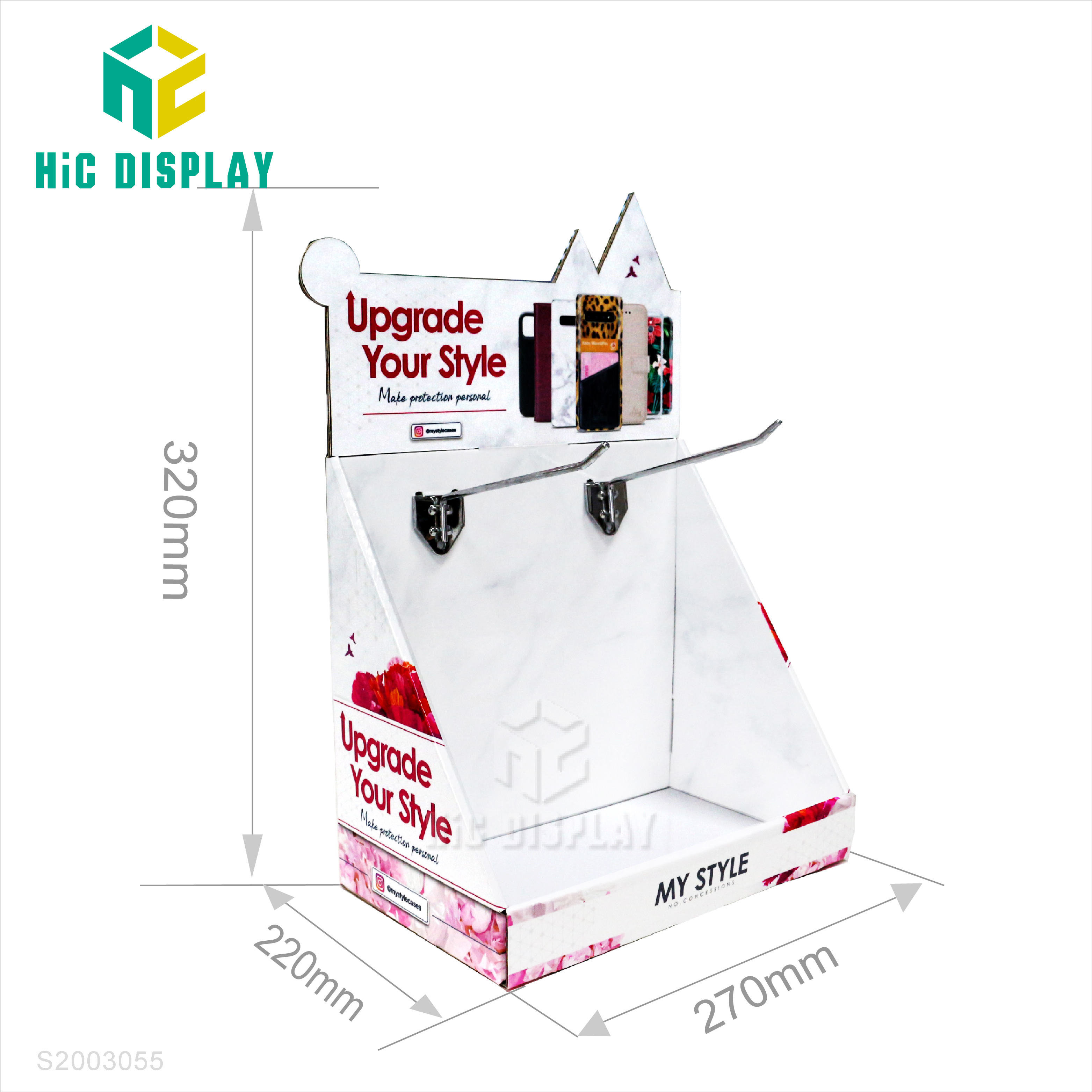 - 产品类型:商场纸货架 产品材料:300g灰卡+E坑 产品规格:270*220*320mm 产品承重:正常承重 产品工艺:彩色印刷,覆膜,光胶,裱,啤,切,粘成品 使用范围:商场,超市,专卖店商品陈列、活动促销等 所用配件:2个铁挂钩 包装方式:打平包装,每箱一套