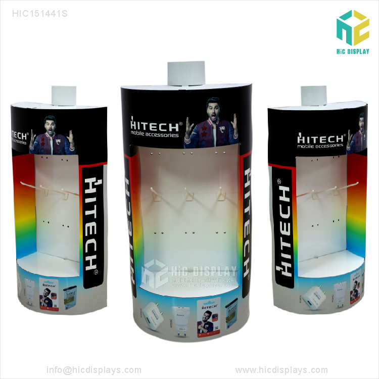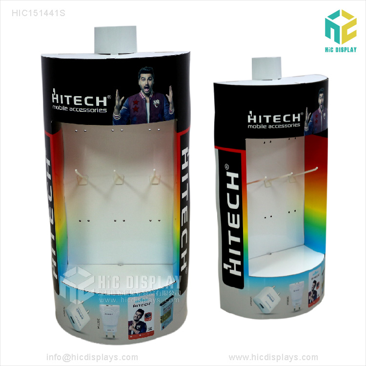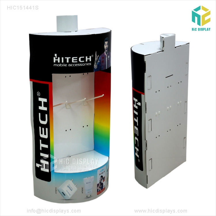 - 产品类型:商场纸货架 产品材料:优质灰卡裱高强度瓦楞纸 产品规格:按客户要求订制 产品承重:正常承重 产品工艺:彩色印刷,覆膜,裱,啤,切,粘成品 使用范围:商场,超市,专卖店商品陈列、活动促销等 所用配件:塑料挂钩9个 包装方式:打平包装,每箱5套