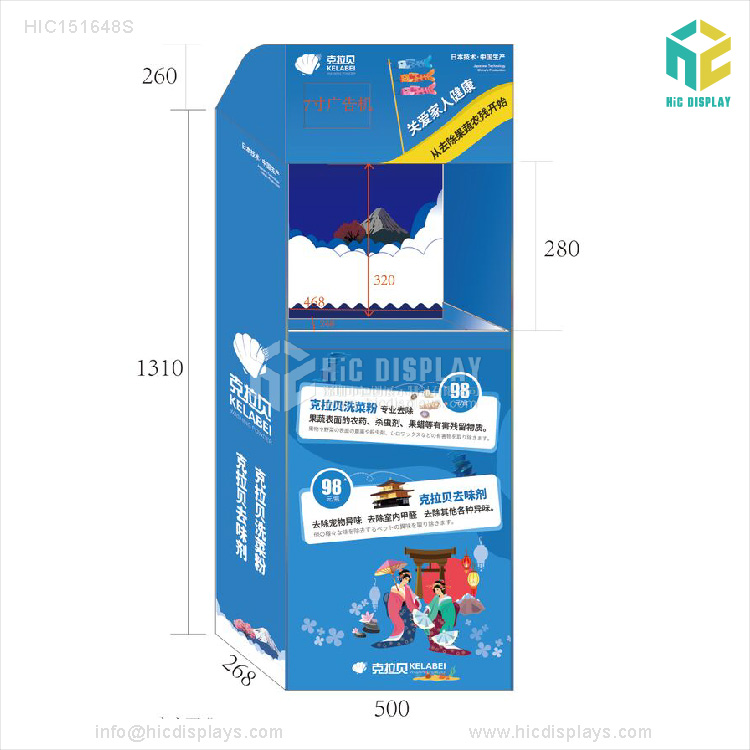 使产品能得到更好的展示。绿色环保、重量轻、体积小、运输方便、组装方便和多次使用等特点,可以根据客户需求定制,尺寸的大小与印刷的图案.