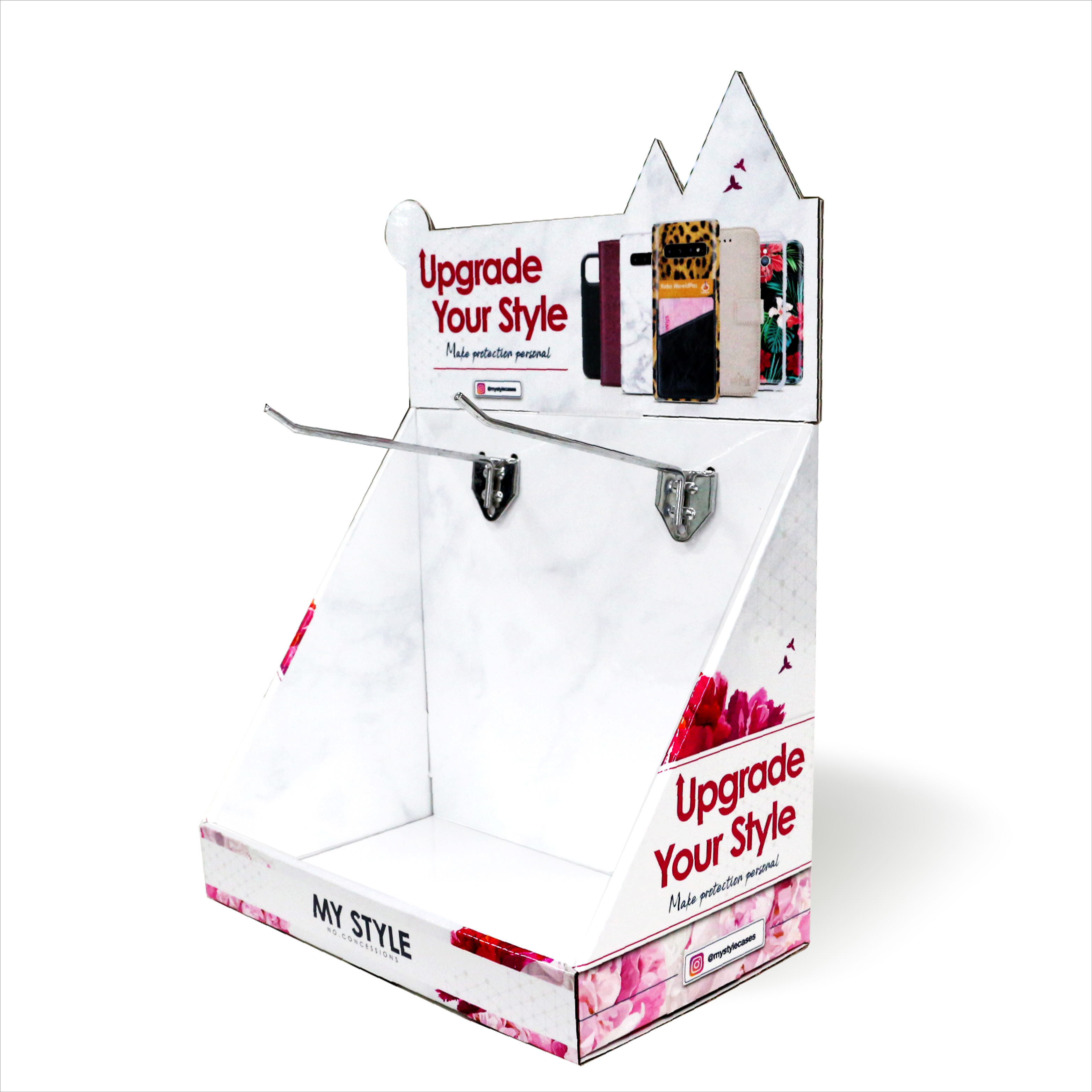 - 产品类型:商场纸货架 产品材料:300g灰卡+E坑 产品规格:270*220*320mm 产品承重:正常承重 产品工艺:彩色印刷,覆膜,光胶,裱,啤,切,粘成品 使用范围:商场,超市,专卖店商品陈列、活动促销等 所用配件:2个铁挂钩 包装方式:打平包装,每箱一套