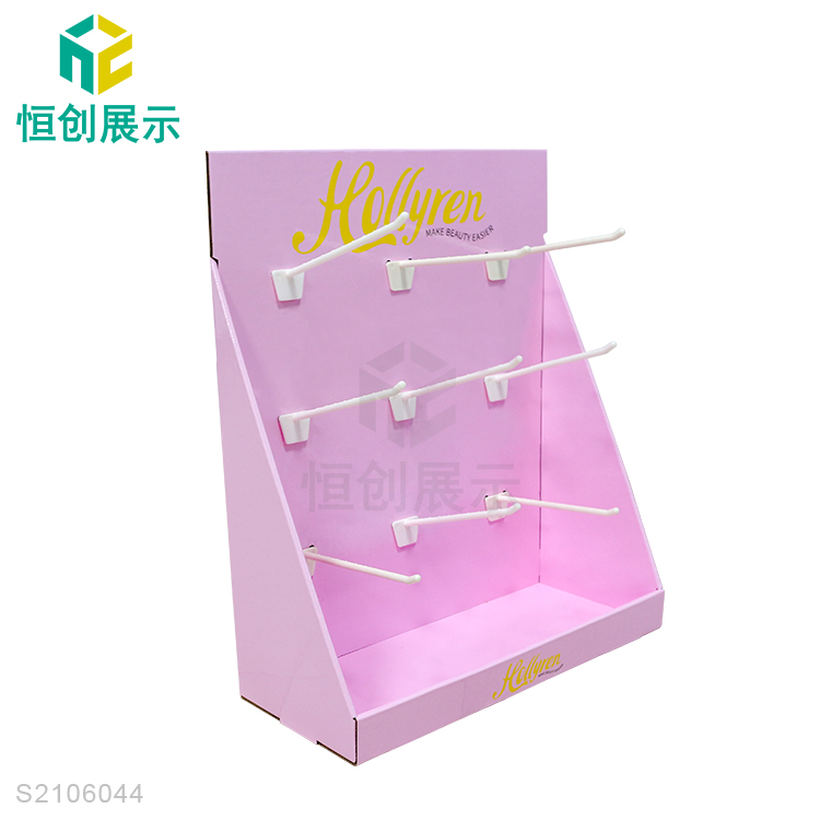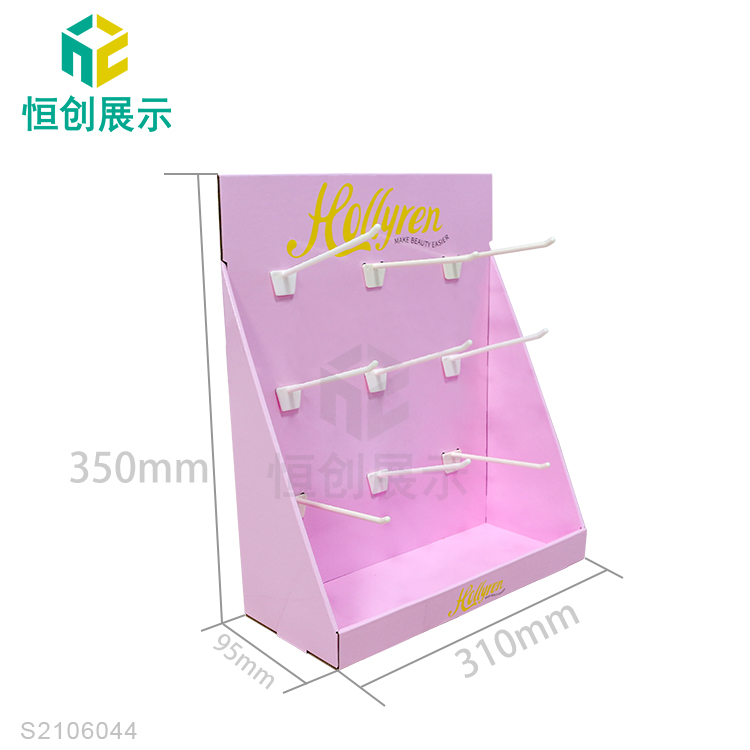 - 产品类型:商场纸货架 产品材料:350g灰卡+B坑 产品规格:310*95*350mm 产品承重:正常承重 产品工艺:彩色印刷,覆膜,光胶,裱,啤,切,粘成品 使用范围:商场,超市,专卖店商品陈列、活动促销等 所用配件:塑料挂钩 包装方式:打平包装,每箱一套