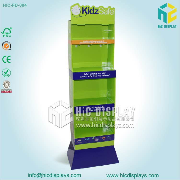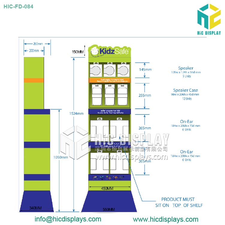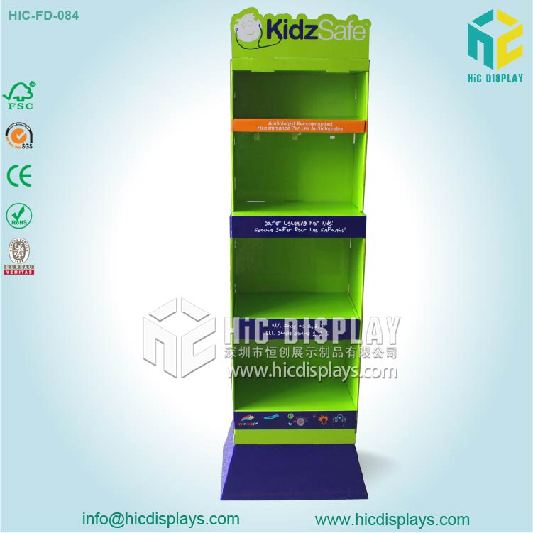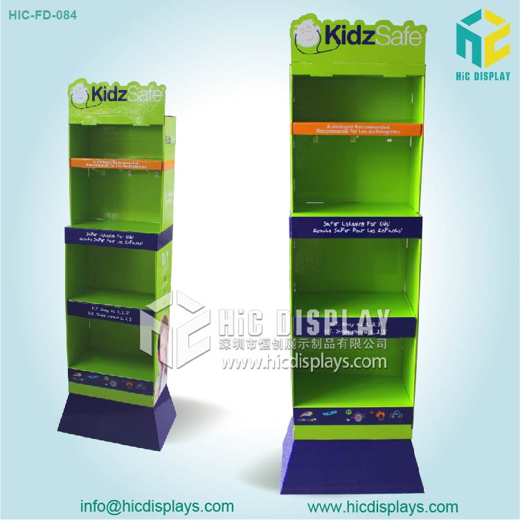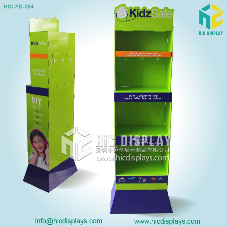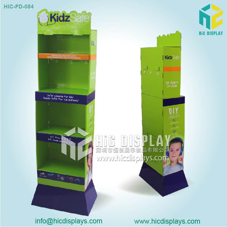 4层耳机落地式纸展示架功能与特点:
